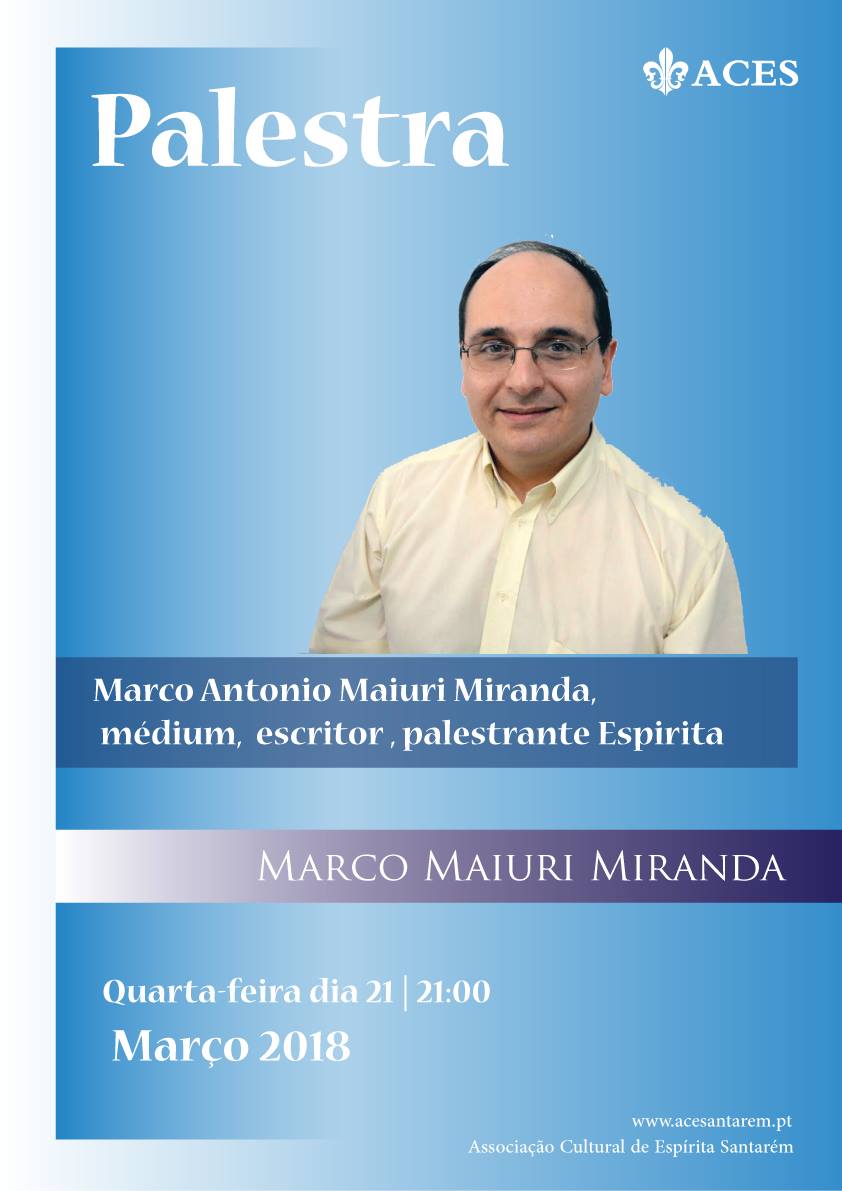Abril 22, 2026 by « Todos os Eventos Este evento já decorreu. Palestra Doutrinária por Marco Maiuri Miranda Março 21, 2018 @ 21:00 - 22:00 « Palestra Musical com Luís Peças & João Paulo Seminário Carmen Silveira Transtornos Mentais e Mediunidade » Assista em directo: http://acesantarem.pt/em-directo/ Adicionar ao calendário Calendário Google iCalendar Outlook 365 Outlook Live Detalhes Data: Março 21, 2018 Hora: 21:00 - 22:00 Categoria de Evento: Palestras Etiquetas de Evento:2018, ACES, Allan Kardec, Associação Cultural Espirita de Santarém, divulgação, Espiritismo, estrada de damasco, Marco Maiuri Miranda, palestra, santarém Local ACES